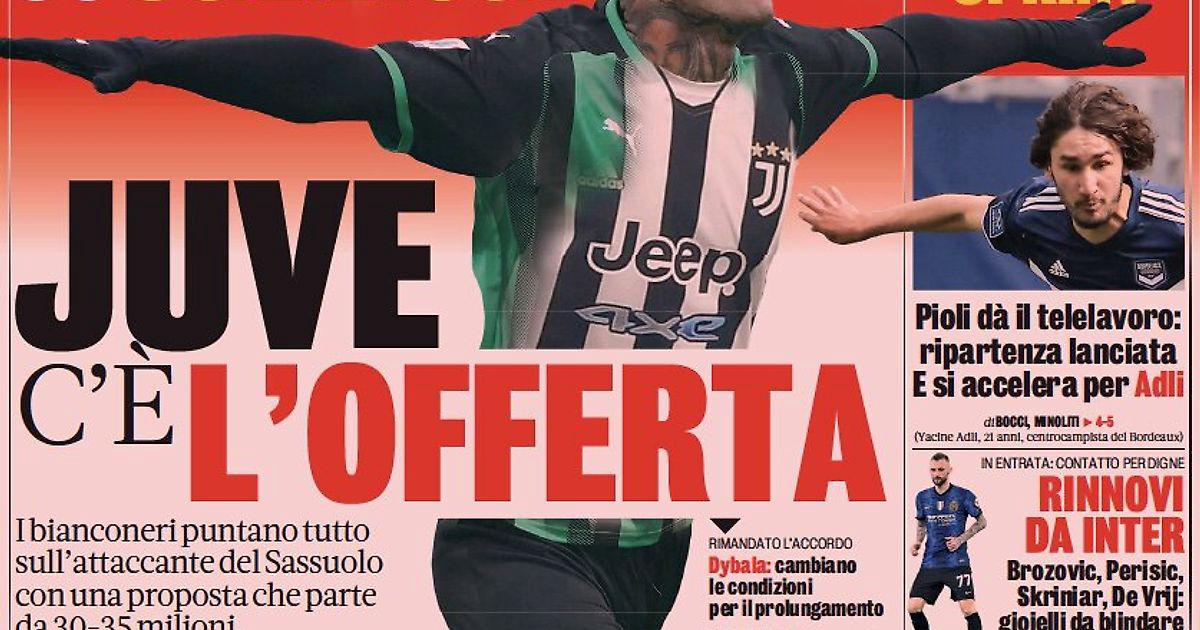 «Юве», есть предложение» – с таким заголовком вышла сегодняшняя Gazzetta. «Давление на Скамакку. Первые контакты с «Сассуоло», чтобы сразу заполучить нападающего. Готово совокупное предложение на 35 миллионов. Клуб Нероверди хотел бы подождать, чтобы открыть аукцион».