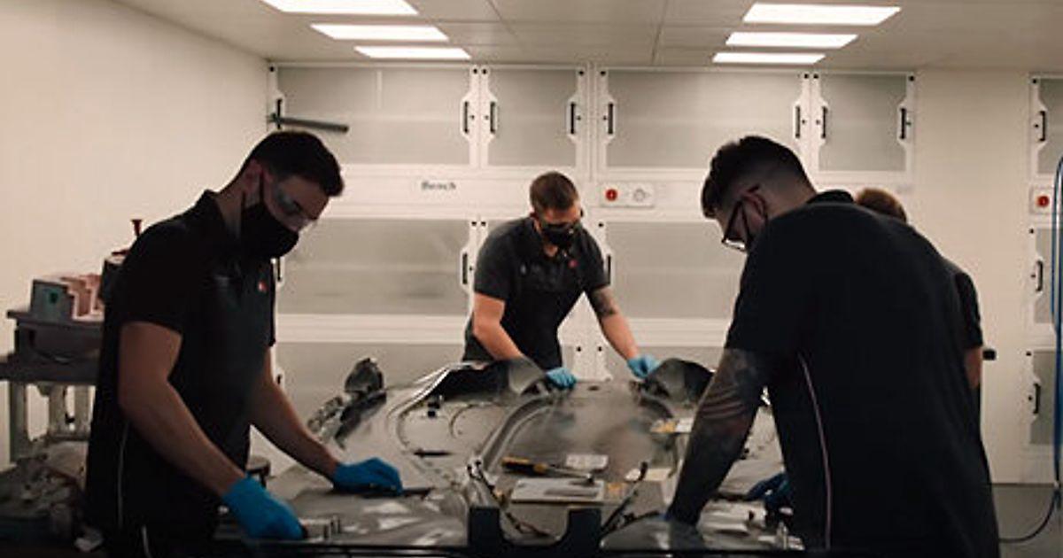 «Все детали собраны, и мы теперь заполняем [щели] и резиним все, все стыки. Чтобы у нас была отличная аэродинамичкская эффективность с плавными, приятными линиями. Вся работа от начала до конца заняла примерно неделю.