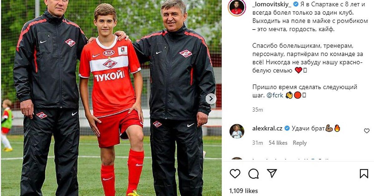 «Я в «Спартаке» с восьми лет и всегда болел только за один клуб. Выходить на поле в майке с ромбиком — это мечта, гордость, кайф. Спасибо болельщикам, тренерам, персоналу, партнерам по команде за все! Никогда не забуду нашу красно-белую семью. Пришло время сделать следующий шаг», — написал у себя в Instagram Ломовицкий.
