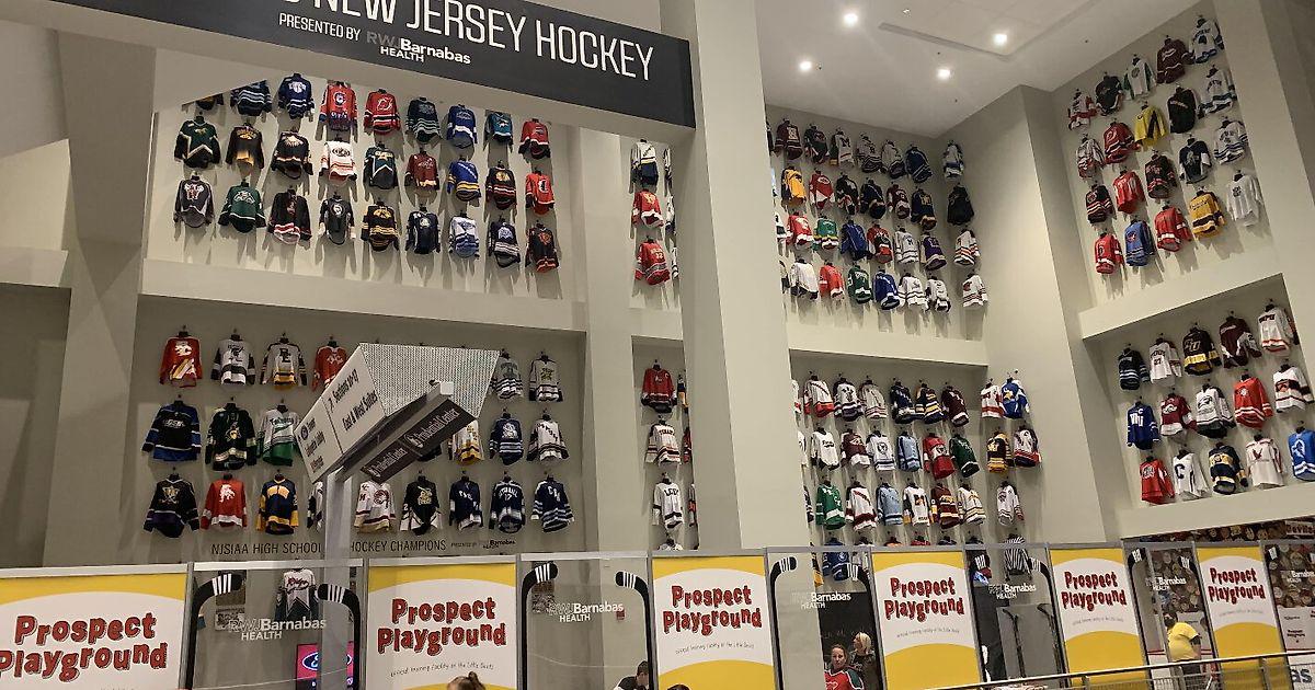 А на втором этаже находятся детские и женские отделы (где я, кстати, впервые увидел «женские джерси»), джерси и футболки клубов с возможностью кастомного нанесения фамилии, и новинка – небольшая выставка экспонатов лиги: заброшенные и подписанные шайбы, экипировка разных времен, памятные джерси и многое другое.