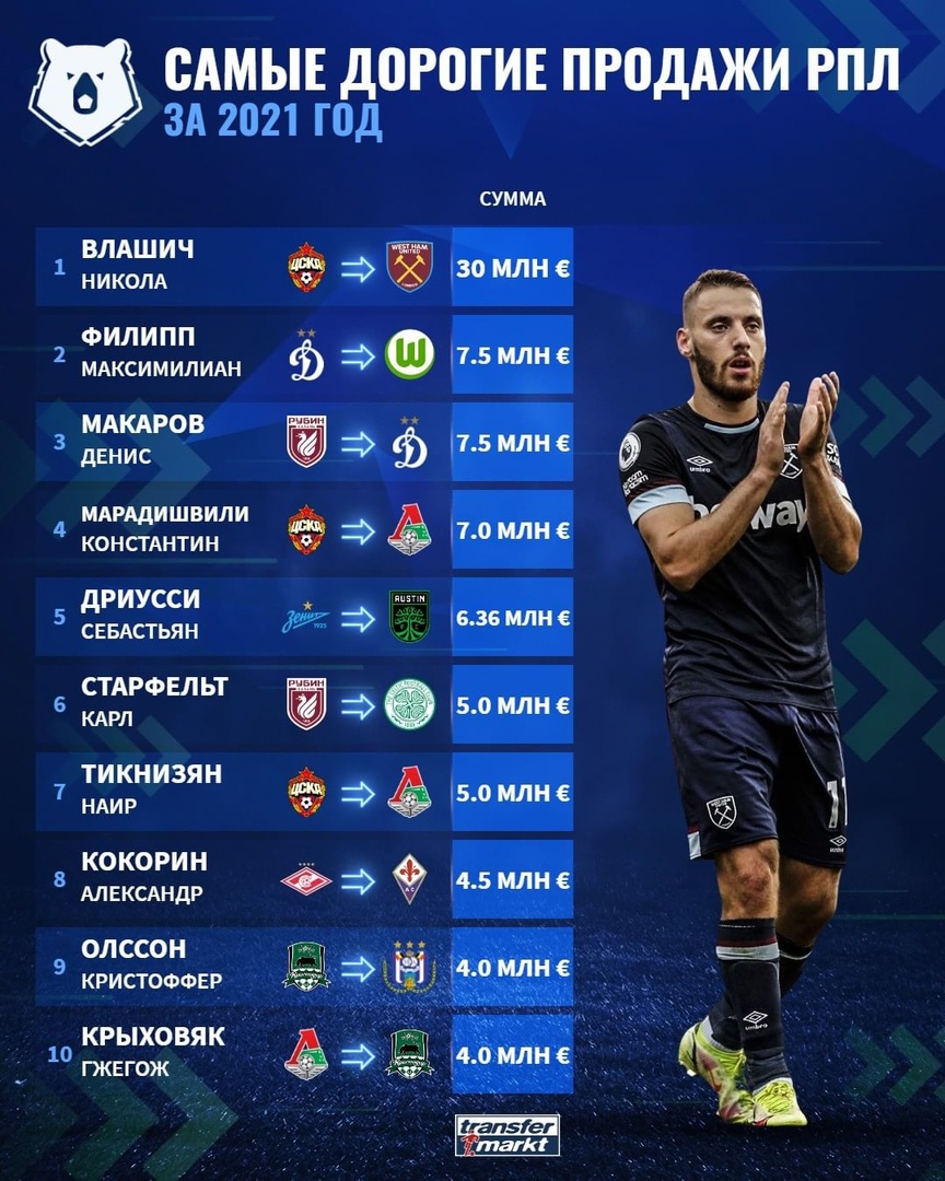 Самые дорогие продажи РПЛ за 2021 год