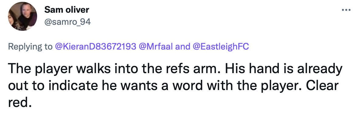 «Игрок шел ровно на руку рефери. Судья выставил ее, чтобы показать: он хочет с ним поговорить. Чистая красная».