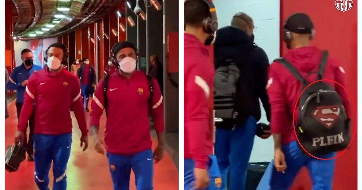 На матч сегодня бразилец заявился в стильной шапке и с рюкзаком Супермена: