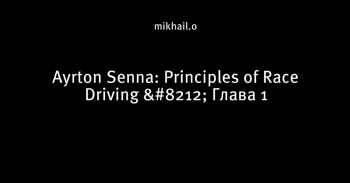 Ayrton Senna: Principles of Race Driving — Глава 1