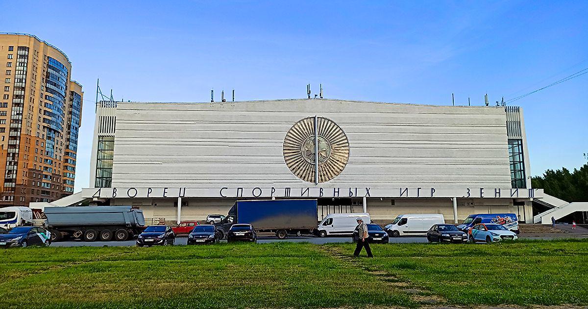 Дворец спортивных игр «Зенит» одно из самых занимательных спортивных сооружений Санкт-Петербурга: полноценное футбольное поле, заключенное в огромную бетонную коробку, а по периметру небольшие балкончики, с деревянными креслами. Ну знаете, такие кресла были в каждом доме культуры СССР: четыре кресла объединены в одну конструкцию. Официально вместимость 3500, на самом деле максимум 1000. Построено здание в 1976 в стиле советского модернизма и в то время было верхом спортивного строительства.