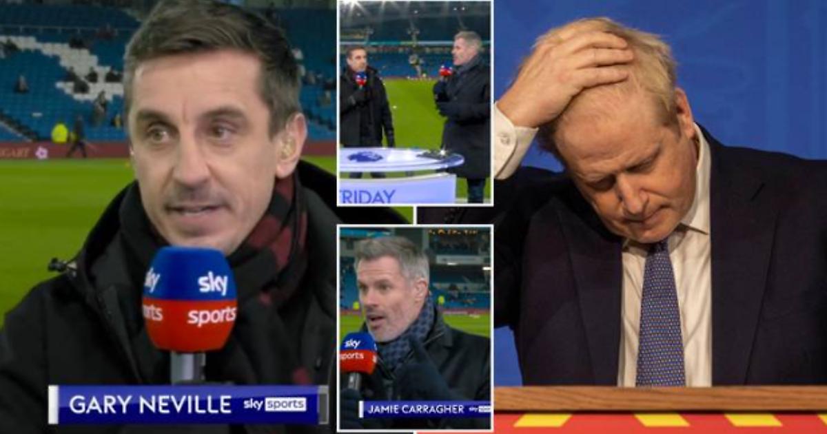 Гари Невилл и Джейми Каррагер потроллили Консервативную партию и премьер-министра Бориса Джонсона в прямом эфире Sky Sports.