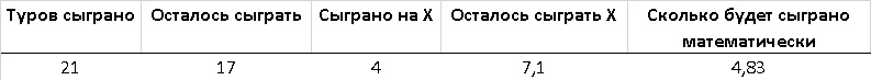 Опять же повторюсь, этот расчет, если мы играем догоном до конца чемпионата и значения так же идут средними.