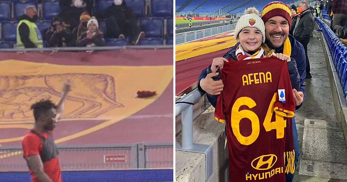 После победы над «Кальяри» молодой форвард «Ромы» Феликс Афена-Гьян бросил майку фанатам на трибуну. Правда, футболка не долетела до нужного места и упала на баннер. Пришлось организовать спасательную операцию – джерси доставали с помощью клубного флага. Но все это точно было не напрасно – просто посмотрите на эмоции юной болельщицы, которой досталась футболка!
