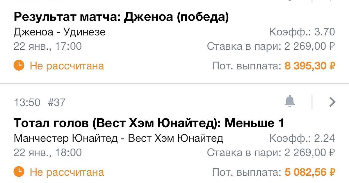 Вторая ставка - победа Дженоа дома. Дженоа и Кадис - две команды из ТОП 5 чемпионатов, которые ни разу не выиграли дома. Я упертый парень, поэтому беру победу Дженоа в матче.