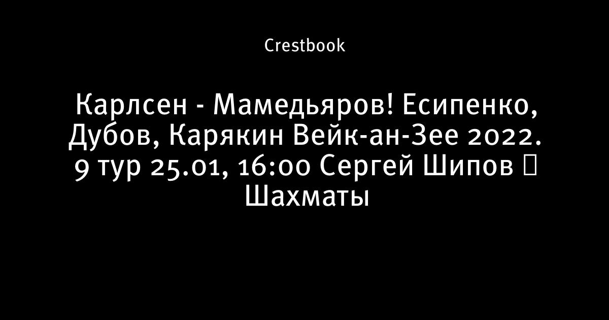 Карлсен - Мамедьяров! Есипенко, Дубов, Карякин 👑 Вейк-ан-Зее 2022. 9 тур ⏰ 25.01, 16:00 🎤 Сергей Шипов ♛ Шахматы