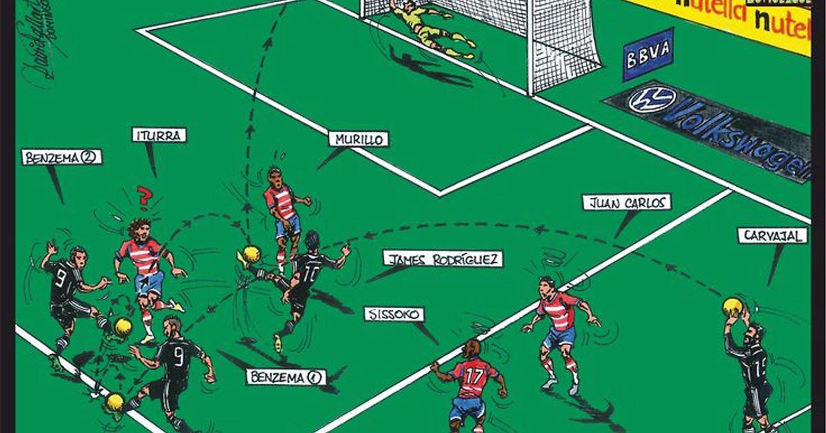 Очередной разгром в исполнении мадридцев и очередной шедевр от Хамеса. После выброса мяча из аута Бензема, казалось, неловко обработал мяч, однако сумел переправить его колумбийцу, который в своих лучших традициях — не опуская мяч на землю — нанёс удар по воротам Роберто.
