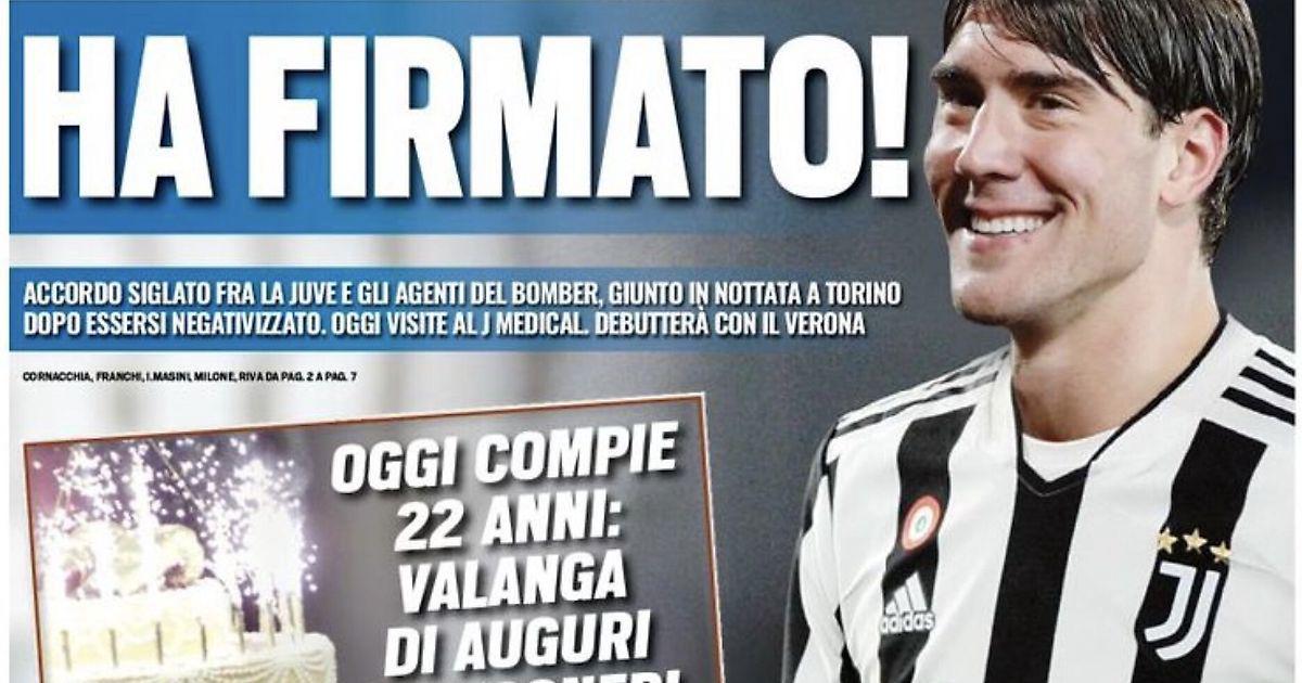 «Он подписал!» – констатирует факт сделки по Влаховичу TuttoSport. «Подписана договорённость между «Юве» и агентами бомбардира. Контакты ночью в Турине после того, как игрок сдал отрицательный тест. Сегодня медицинский осмотр в J Medical. Он дебютирует с «Вероной». Также туринское издание отмечает сегодняшний день рождения форварда: «Сегодня он отмечает 22 года: лавина поздравлений от Бьянконери».