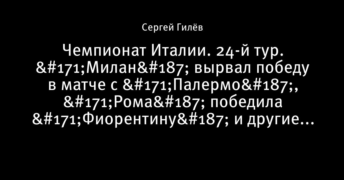 Чемпионат Италии. 24-й тур. «Милан» вырвал победу в матче с «Палермо», «Рома» победила «Фиорентину» и другие матчи