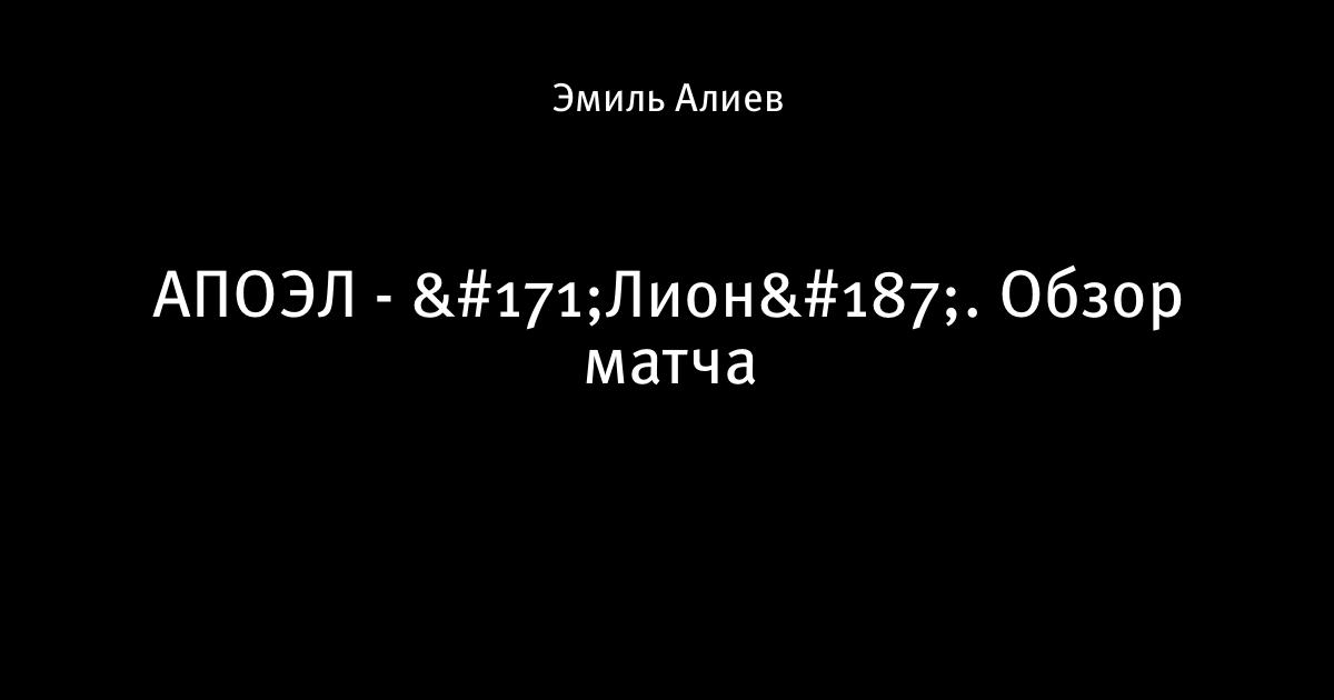 Что ж, поздравляем АПОЭЛ с заслуженным выходом в 1/4 Лиги Чемпионов. А "Лиону" и его болельщикам остаётся пожелать терпения. Тяжёлые времена бывают у всех. Но они проходят.