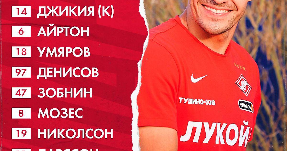 "Спартак": Максименко, Литвинов, Жиго, Джикия (к), Айртон, Денисов, Умяров, Зобнин, Мозес, Ларссон, Николсон.