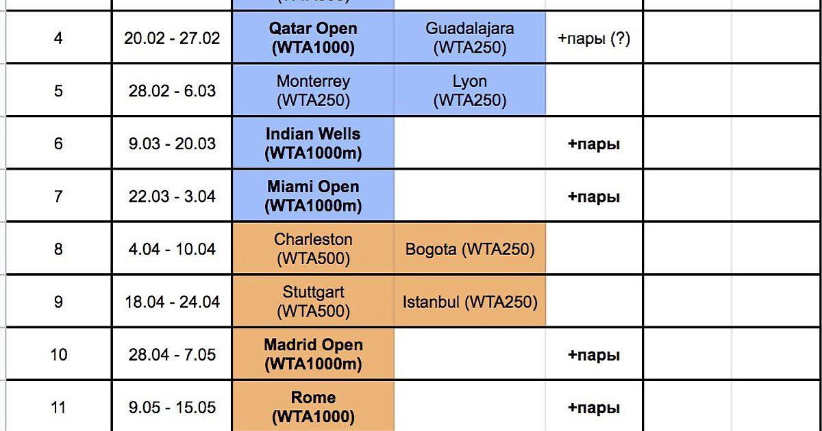 Дальше Уимблдона официального календаря нет, поэтому пока только на половину сезона.