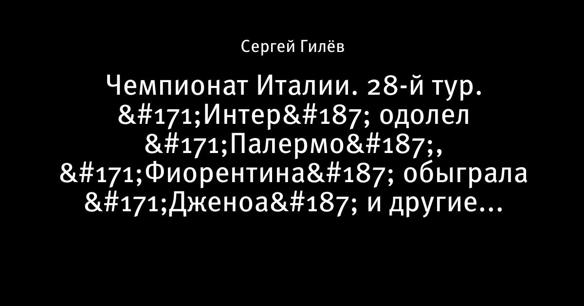 Чемпионат Италии. 28-й тур. «Интер» одолел «Палермо», «Фиорентина» обыграла «Дженоа» и другие матчи