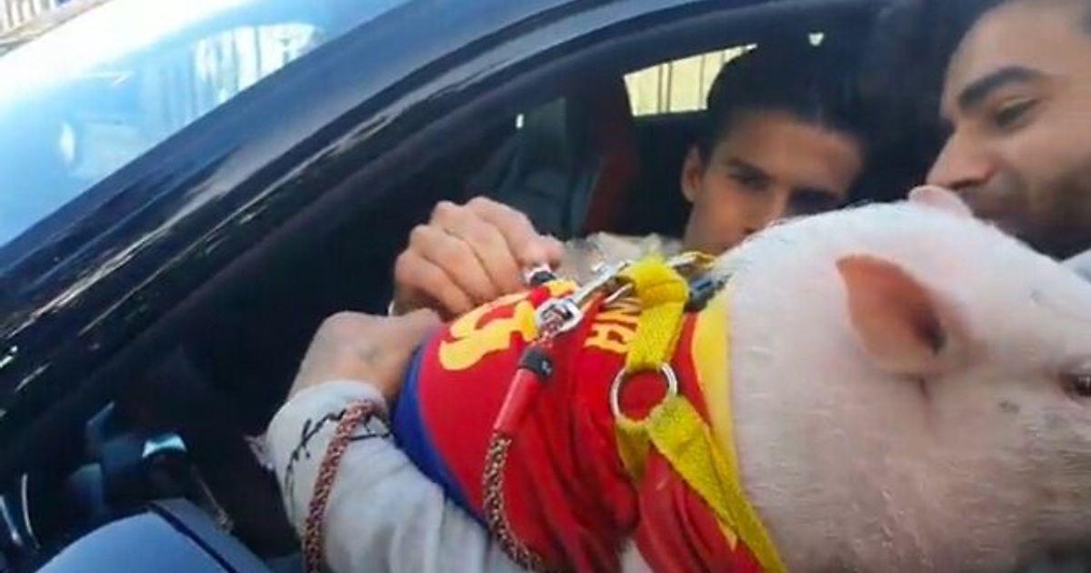 Рики Пуч из «Барселоны» дал автограф на свинье, которую принес фанат. Возможно, это отсылка к Куману