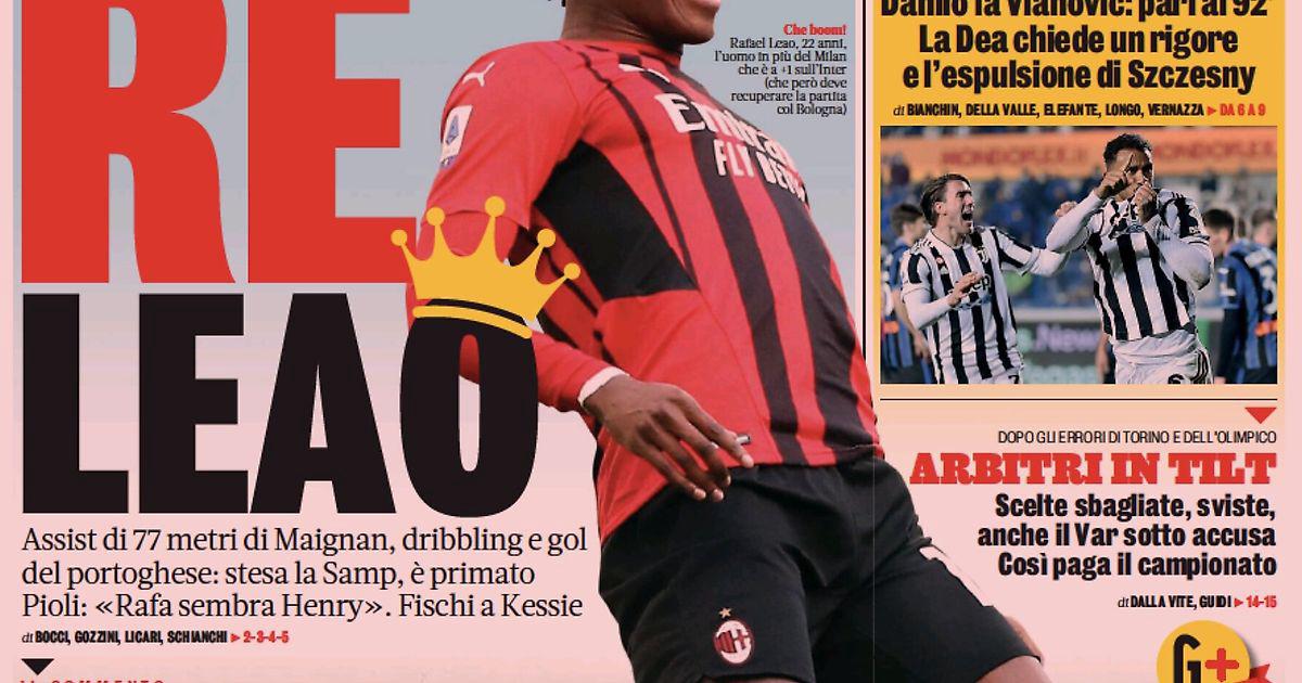 «Король Леау» – таким заголовком Gazzetta отмечает главного героя в победе «Милана» над «Самп»: «Обгон «Милана» на дороге за Скудетто. Ассист на 77 метров от Меньяна, обводка и гол португальца: уложил «Самп», это первое место. Пиоли: «Рафа напоминает Анри». Свист в адрес Кессье».