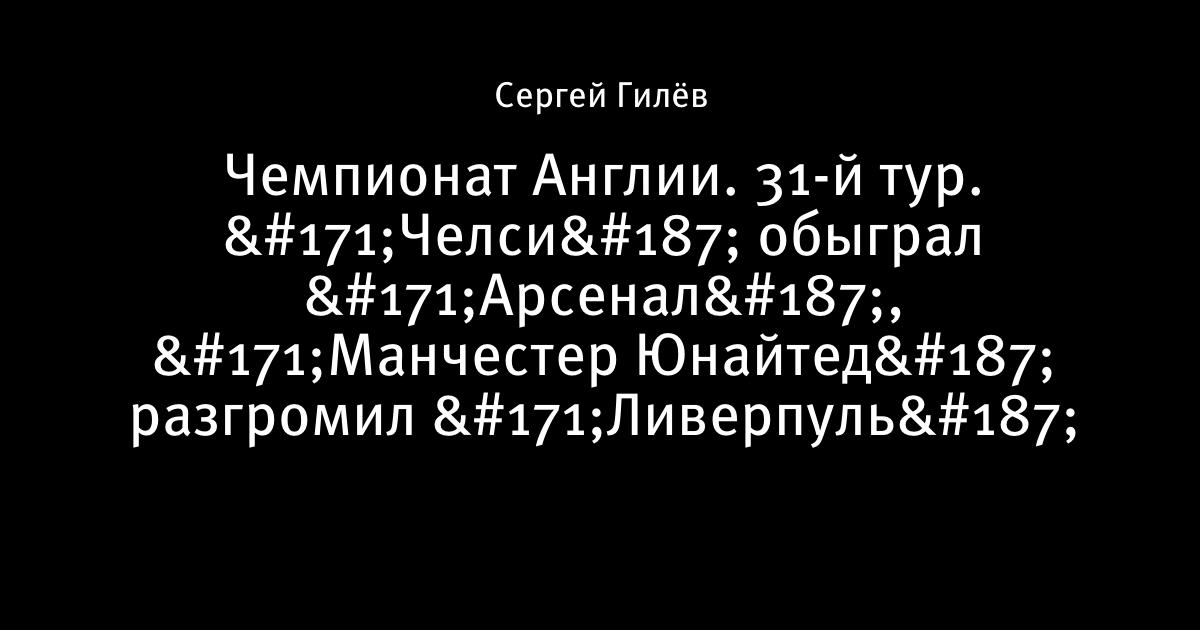 Чемпионат Англии. 31-й тур. «Челси» обыграл «Арсенал», «Манчестер Юнайтед» разгромил «Ливерпуль»