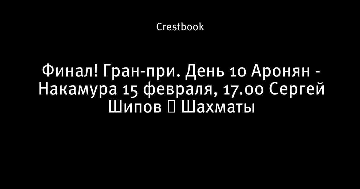 Финал! Гран-при. День 10 👑 Аронян - Накамура ⏰ 15 февраля, 17.00 🎤 Сергей Шипов ♕ Шахматы