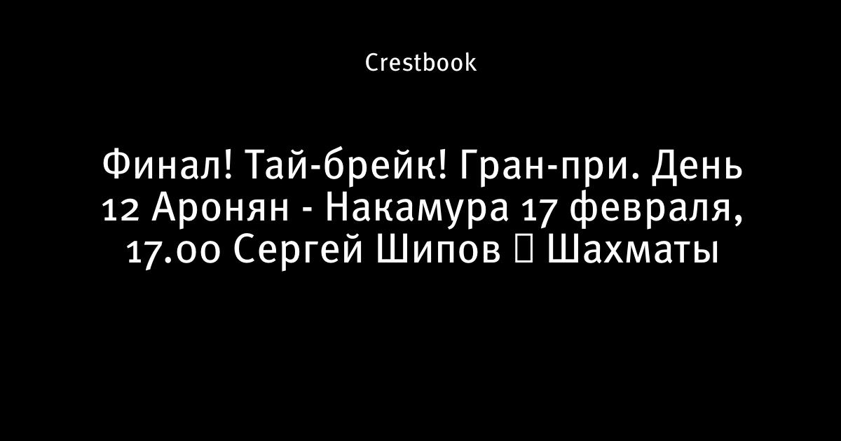 Финал! Тай-брейк! Гран-при. День 12 👑 Аронян - Накамура ⏰ 17 февраля, 17.00 🎤 Сергей Шипов ♕ Шахматы