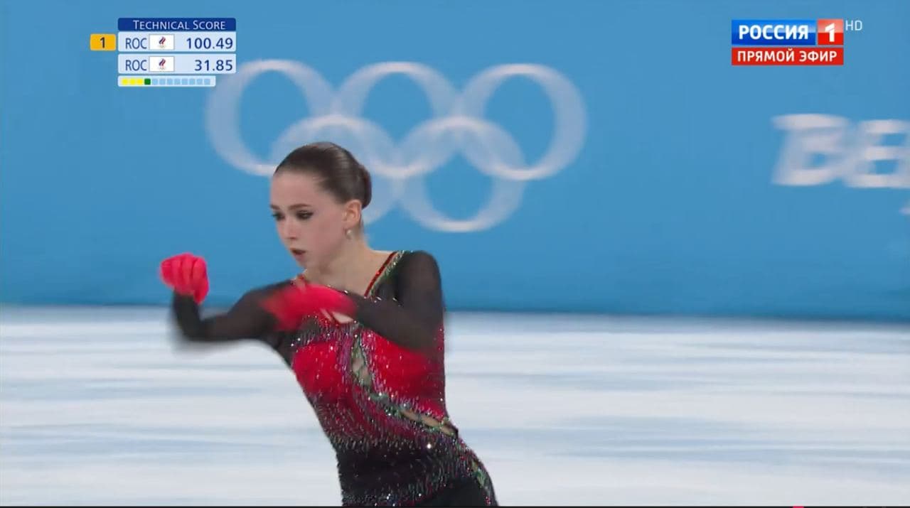 Камила Валиева дважды упала в произвольной программе и занял 4 место в личном турнире на Олимпиаде. Первое место у Анны Щербаковой.