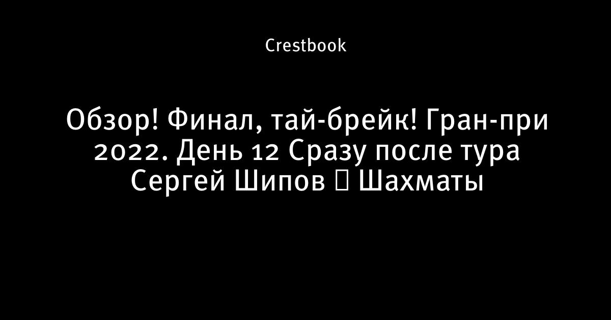 Обзор! Финал, тай-брейк! Гран-при 2022. День 12 ⏰ Сразу после тура 🎤 Сергей Шипов ♕ Шахматы