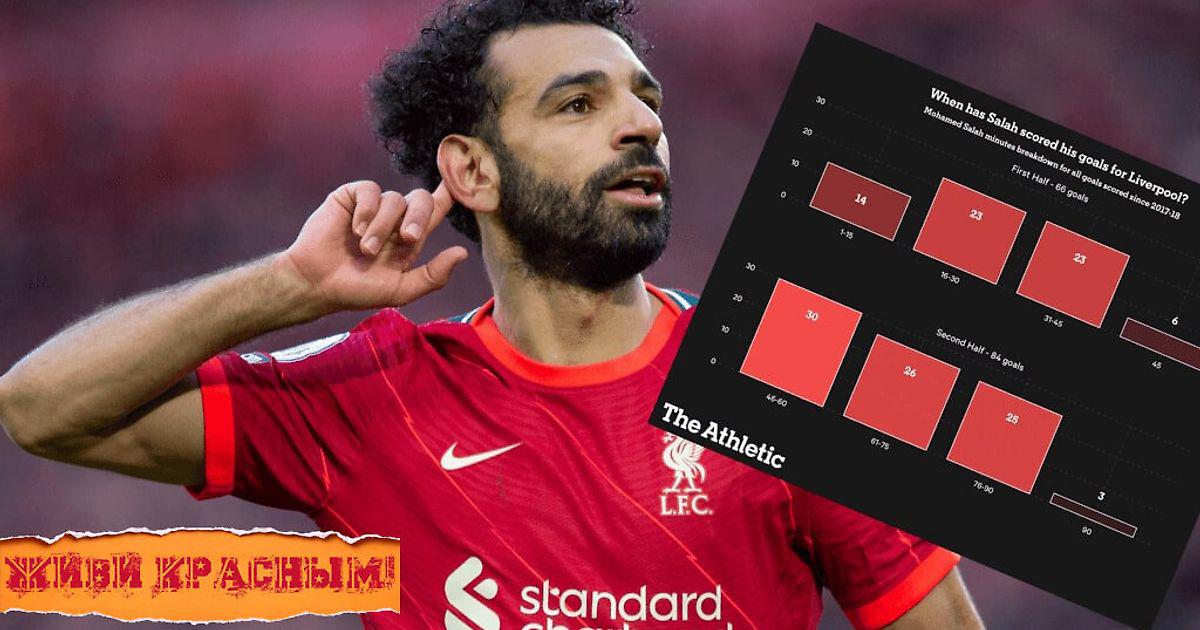 Учитывая, что Салах забил всего 14 из своих голов за первые 15 минут игр, это говорит о том, что он играет лучше, как только разогреется и выяснит, что там с соперником.