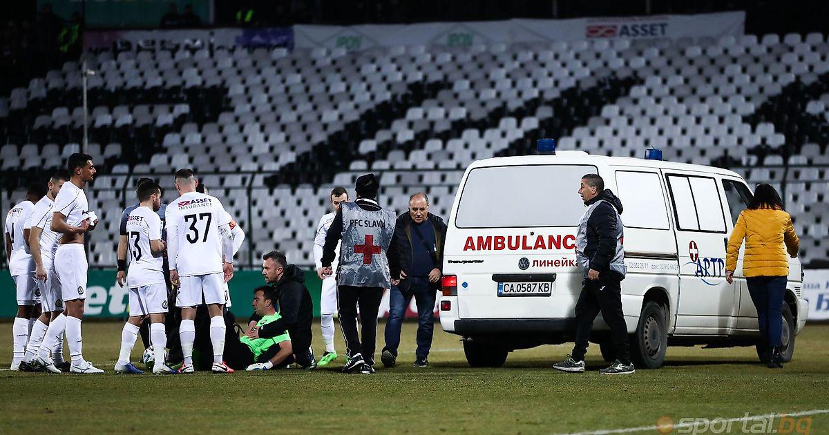 Вратарь «Славии» Георги Петков был вынужден покинуть матч с софийским ЦСКА на машине скорой помощи. Дверь автомобиля не хотела открываться