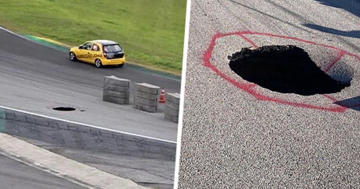 На трассе для «Ф-1» появилась дыра в метр. Ее просто огородили и продолжили гонки