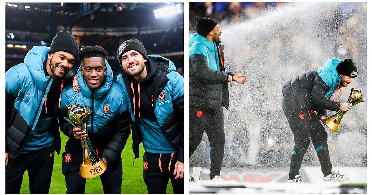 Риса Джеймса, Бена Чилуэлла и Каллума Хадсона-Одои окатили поливалками прямо на "Стэмфорд Бридж", пока игроки "синих" презентовали на родной арене трофей Клубного чемпионата мира. Получилось одновременно забавно и эпично!