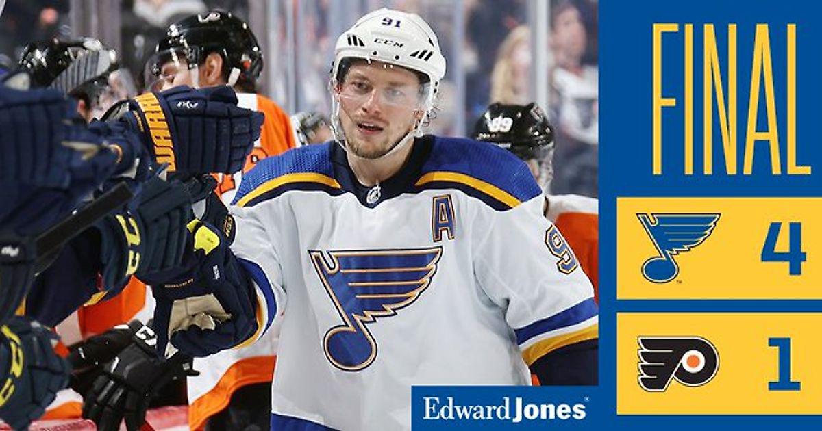 "Филадельфия Флайерс"-"Сент-Луис Блюз" 1:4.Иван Барбашев набрал 2 очка (1+1),Нико Миккола отдал 2 результативные передачи,Владимир Тарасенко забросил одну шайбу,Джордан Биннингтон отразил 25 бросков.