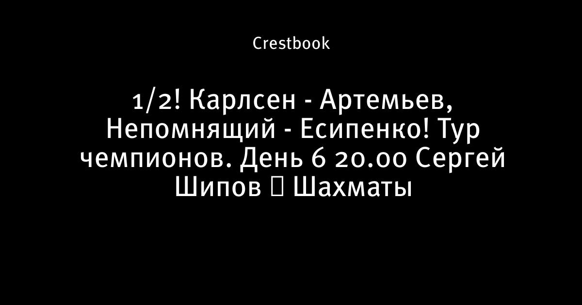 1/2! Карлсен - Артемьев, Непомнящий - Есипенко! 🏆 Тур чемпионов. День 6 ⏰ 20.00 🎤 Сергей Шипов ♕ Шахматы