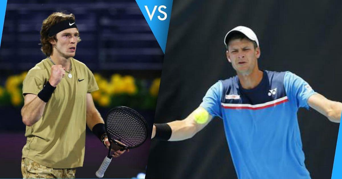 Первый сет начался стабильно неудачно для Андрея, но снова отлично для Хуберта. В последних матчах российский теннисист всегда уступает стартовый сет, а вот польский игрок выиграет партию со счётом 6-3. Сегодня ранний брейк помог опять сделать этот счёт. Второй сет был без борьбы на подаче, хотя один брейкпоинт имел Андрей в четвёртом сете. Так оба демонстрировали очень хорошую игру на своём мяче и спокойно продвигались от гейма к гейму. Дело могло дойти до тай-брейка, но Хуркач провалил свою подачу в двенадцатом гейме и уступил 7-5. Решающая партия тоже очень острой была в четвёртом гейме и тут уже целых четыре брейкпоинта было у Андрея, но вот забрать подачу соперника он снова не смог. В следующем розыгрыше уже Хуберт имел брейк, но он тоже не смог взять подачу на приеме. Дальше уже спортсмены шли ещё увереннее со своей подачей и все же дошли до тай-брейка. Он был наполнен красивыми ударами, отличными розыгрышами и игра не своём мяче была на высоте, но единственная ошибка поляка стала для него фатальной. Андрей отправляется во второй финал к ряду и скоро определится его соперник. Им станет Иржи Веселы или Денис Шаповалов.