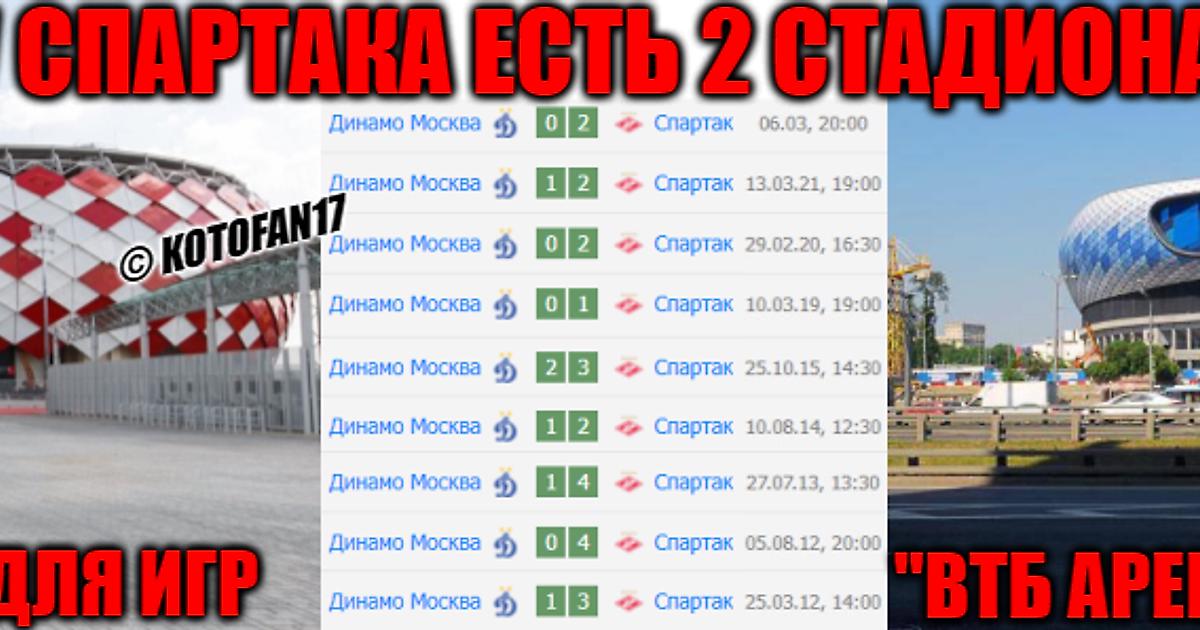 Итого: 10 матчей, 9 побед, 1 ничья. У Спартака есть 2 стадиона: "Открытие Арена" – для игр и "ВТБ Арена" – для тренировок!