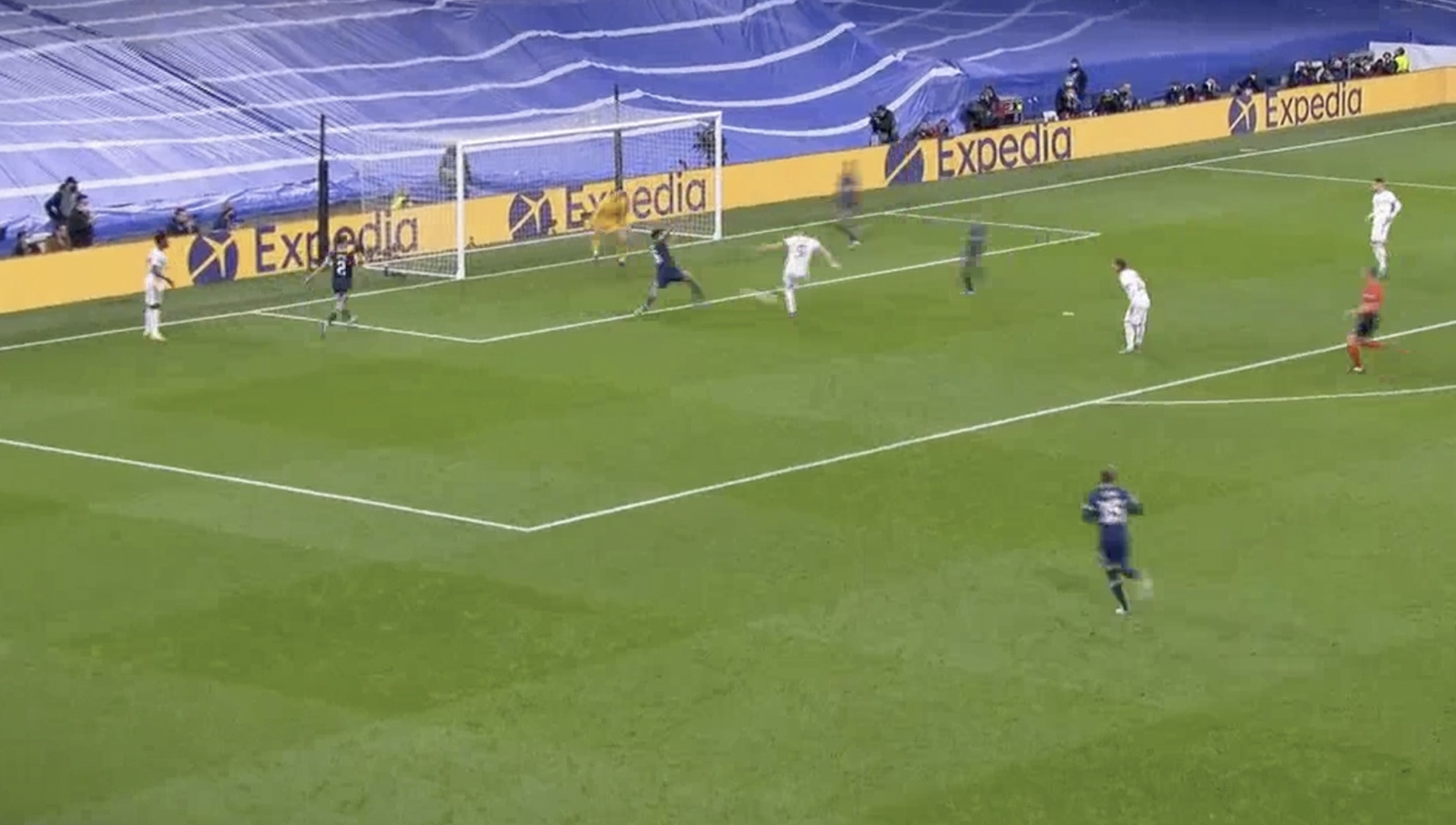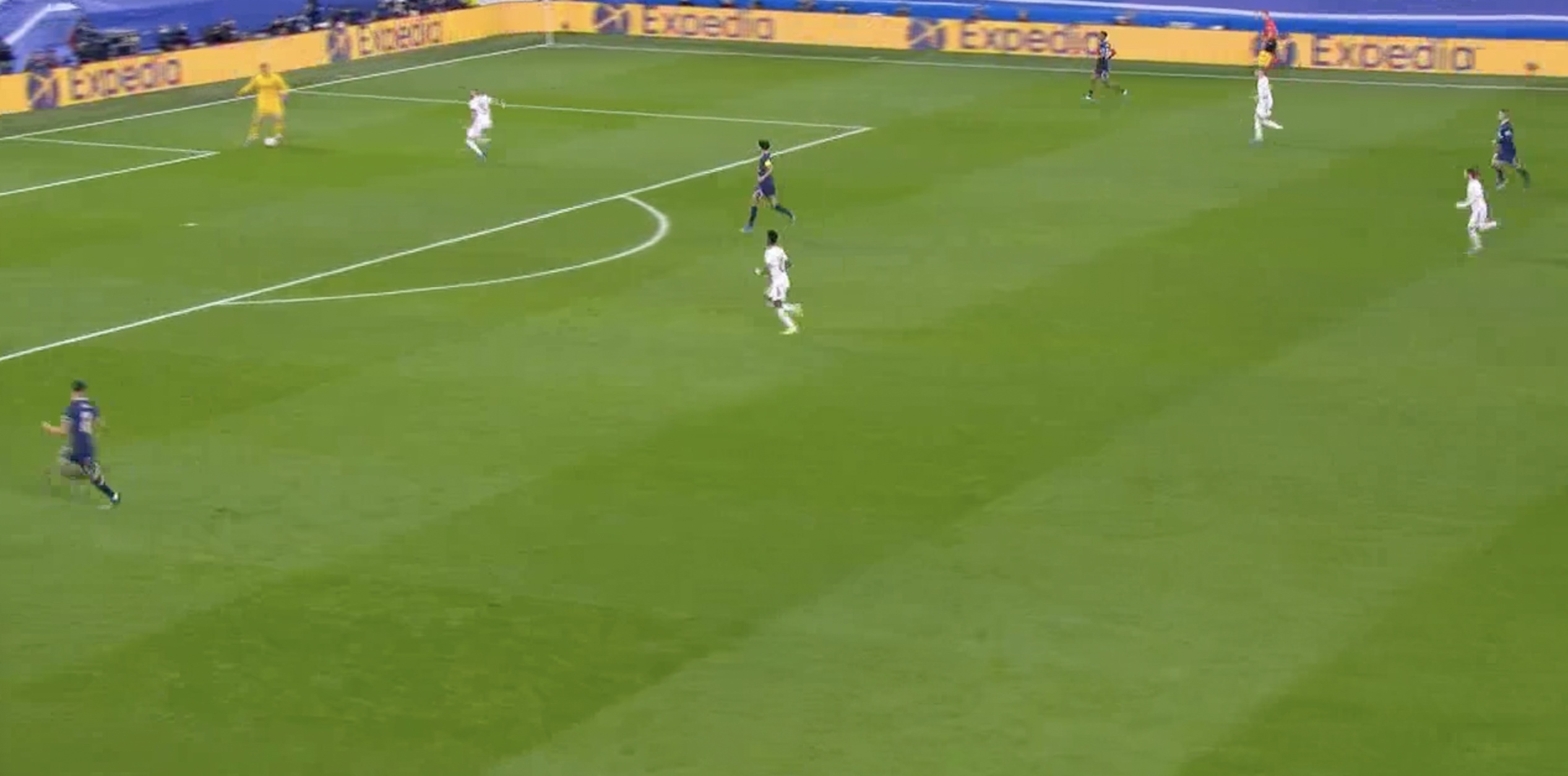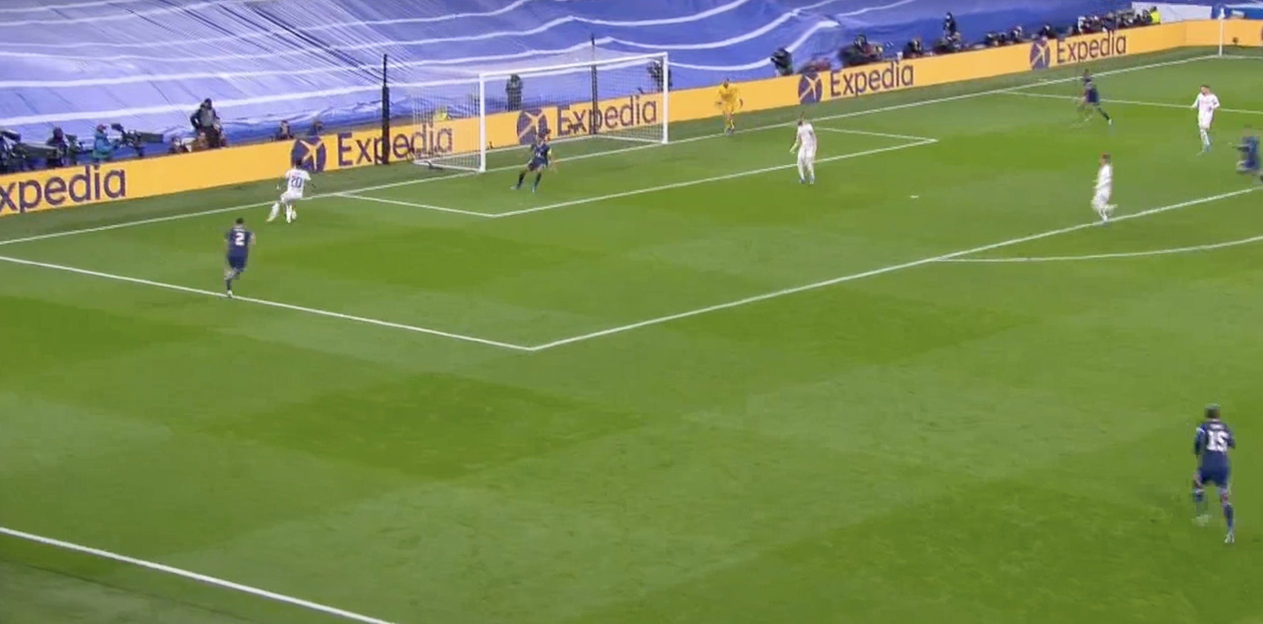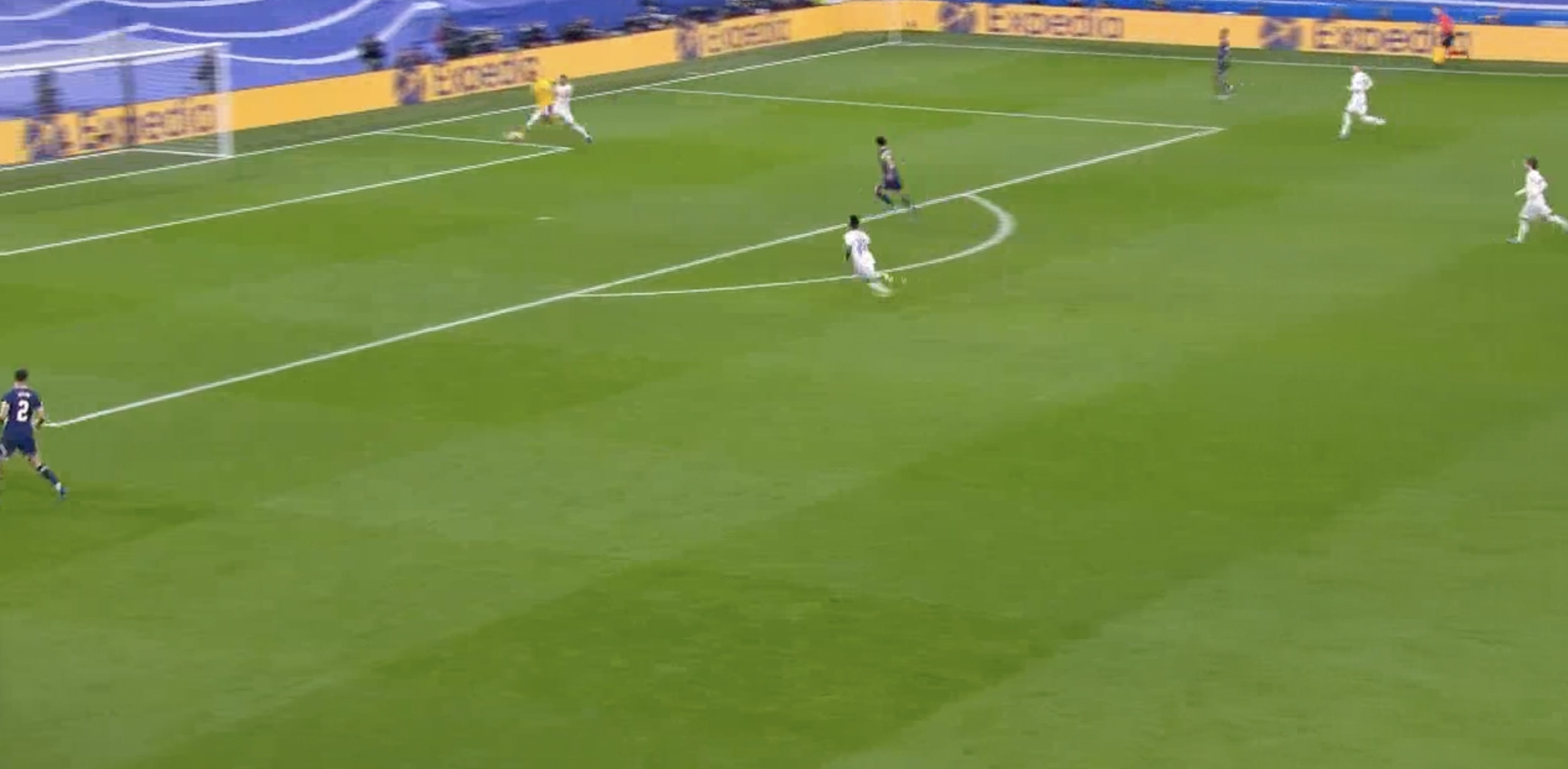 В результате мяч прокатился вдоль ворот и оказался у Винисиуса...