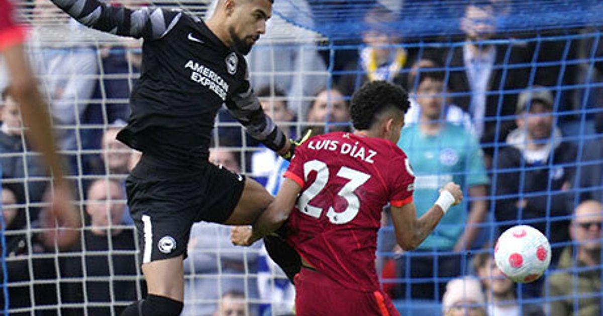 Самый храбрый гол недели: Диас получил с ноги от кипера «Брайтона», но протолкнул мяч в сетку