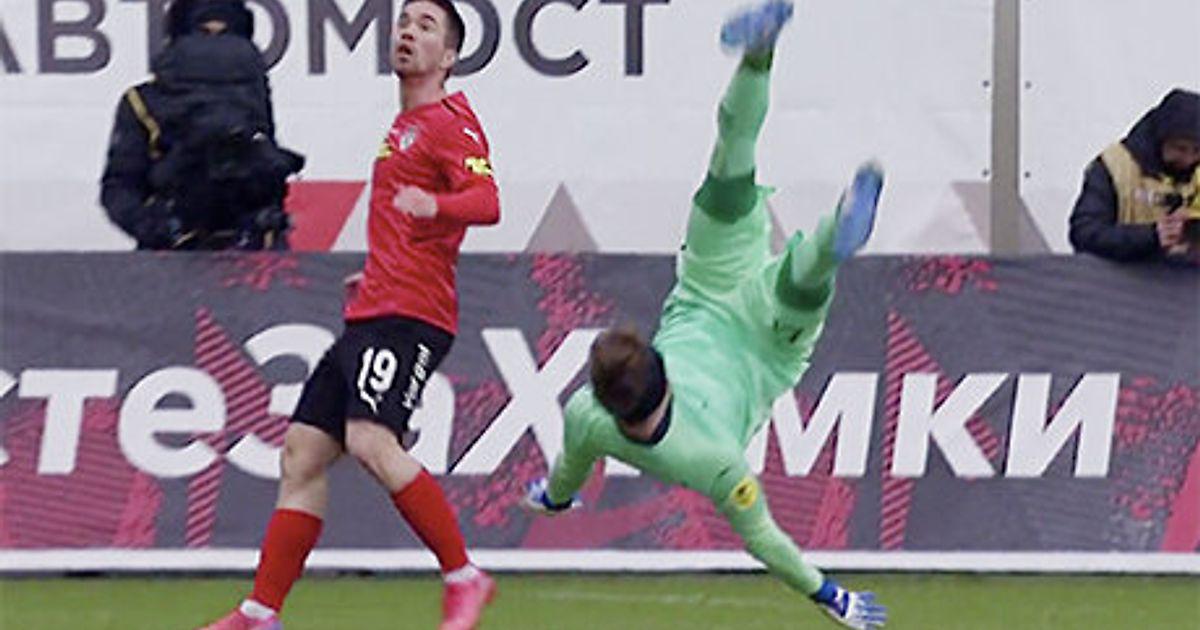 Жуткое падение кипера «Сочи» Адамова. Подозревали переломы и разрыв селезенки – кажется, обошлось