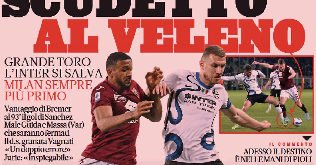 «Скудетто с ядом» – таким заголовком Gazzetta отметила ничейный результат в туринском матче: «Ничья и споры, проблема в не поставленном пенальти на Белотти. Отличный «Торино», «Интер» спасся. «Милан» всё более первый. После того, как Бремер вывел вперёд, на 93 минуте гол забил Санчес. Плохая работа Гуиды и Массы (ВАР), которые будут отстранены. Спортивный директор «гранатовых» Ваньяти: «Двойная ошибка». Юрич: «Необъяснимо».