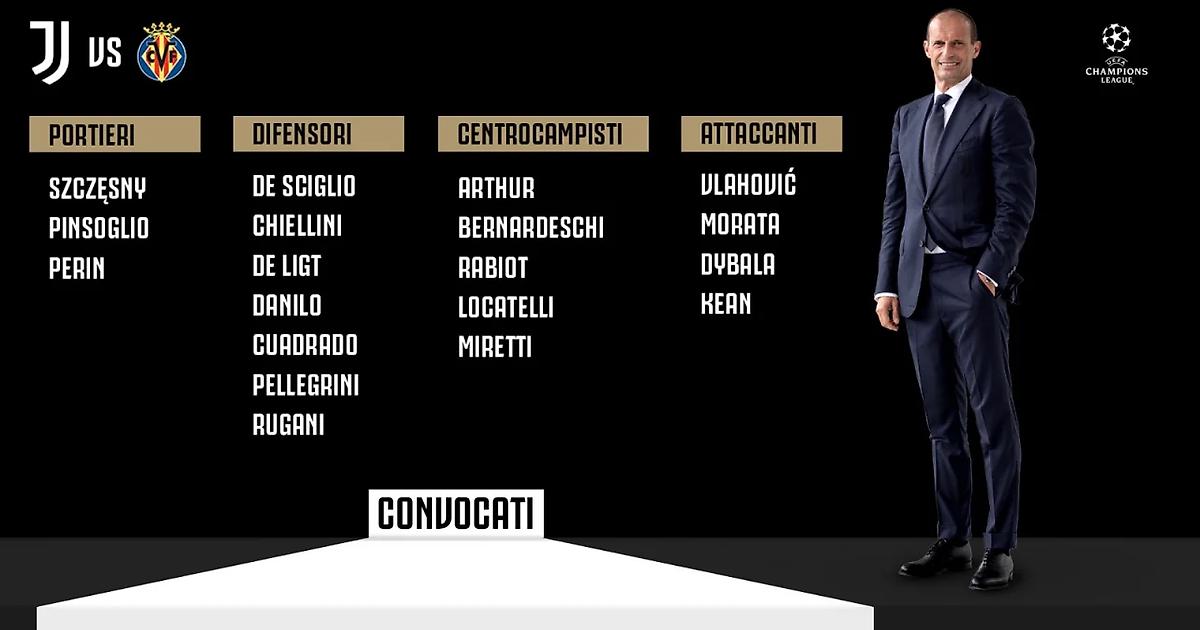 Заявка «Ювентуса» на матч с «Вильярреалом»