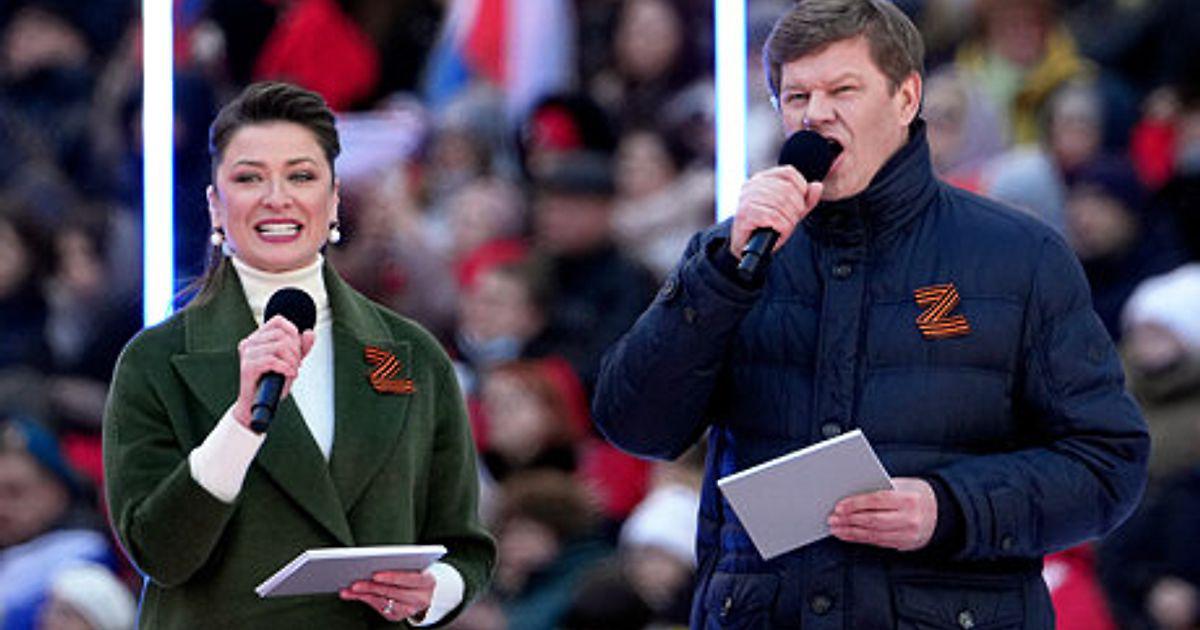 Транслировали митинг массово, как минимум 19 каналов: Первый, «Россия 1», «Россия 24», СТС, РЕН ТВ, «Домашний», ТВ-3, «Пятница», «Москва 24», «Матч Страна», «Матч Планета», Пятый канал, ТНТ, Муз-ТВ, НТВ, «Матч ТВ», ОТР, ТВ Центр и «Известия». Причем в программе трансляция значилась только у Первого, «России», «Матч ТВ» и НТВ – остальные каналы просто прервали вещание ради концерта.