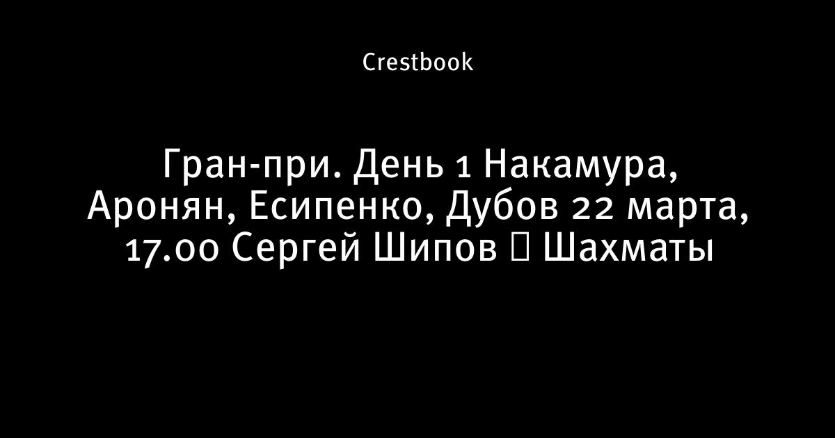 Гран-при. День 1 👑 Накамура, Аронян, Есипенко, Дубов ⏰ 22 марта, 17.00 🎤 Сергей Шипов ♕ Шахматы