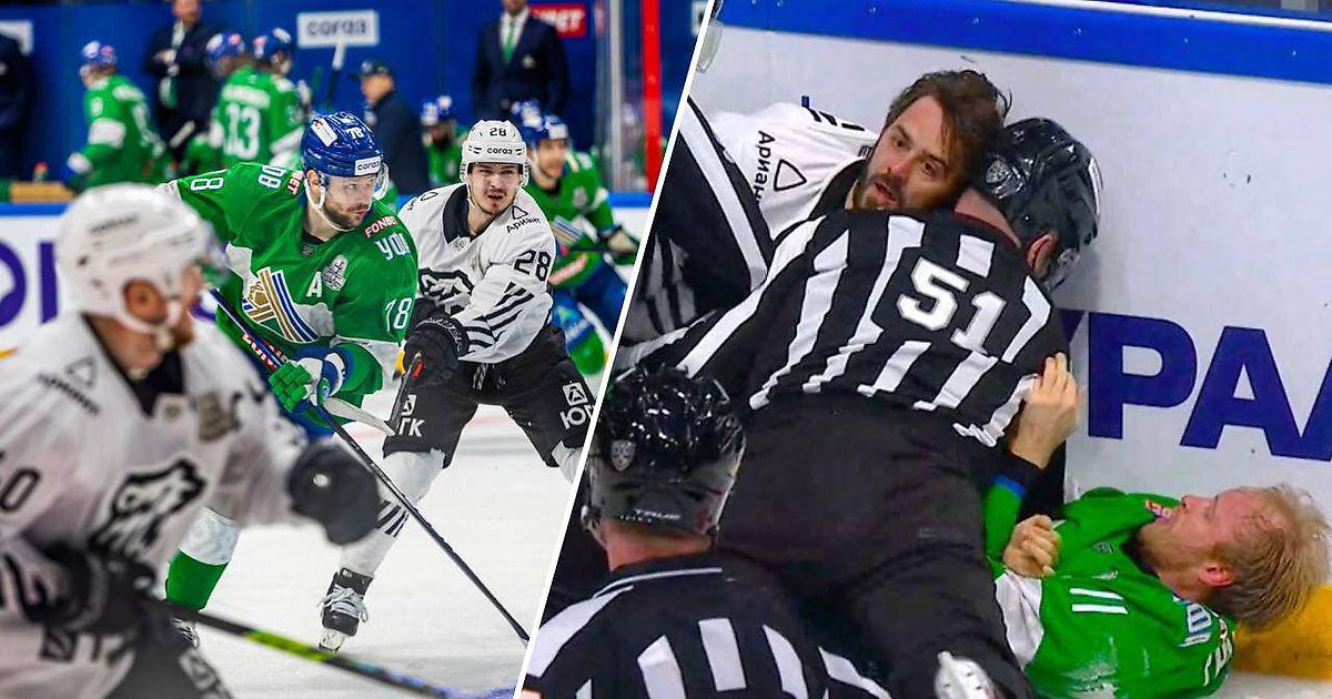 Панин просто жестит: вырубил соперника локтем и подрался. После этого у «Салавата» не осталось шансов спасти матч
