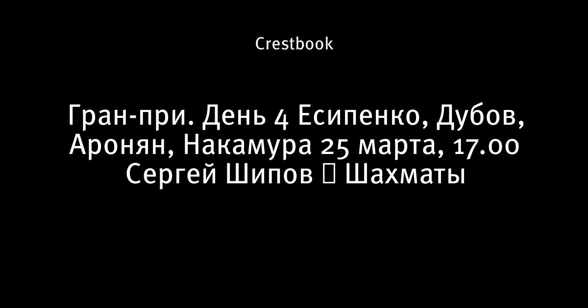 Гран-при. День 4 👑 Есипенко, Дубов, Аронян, Накамура ⏰ 25 марта, 17.00 🎤 Сергей Шипов ♕ Шахматы