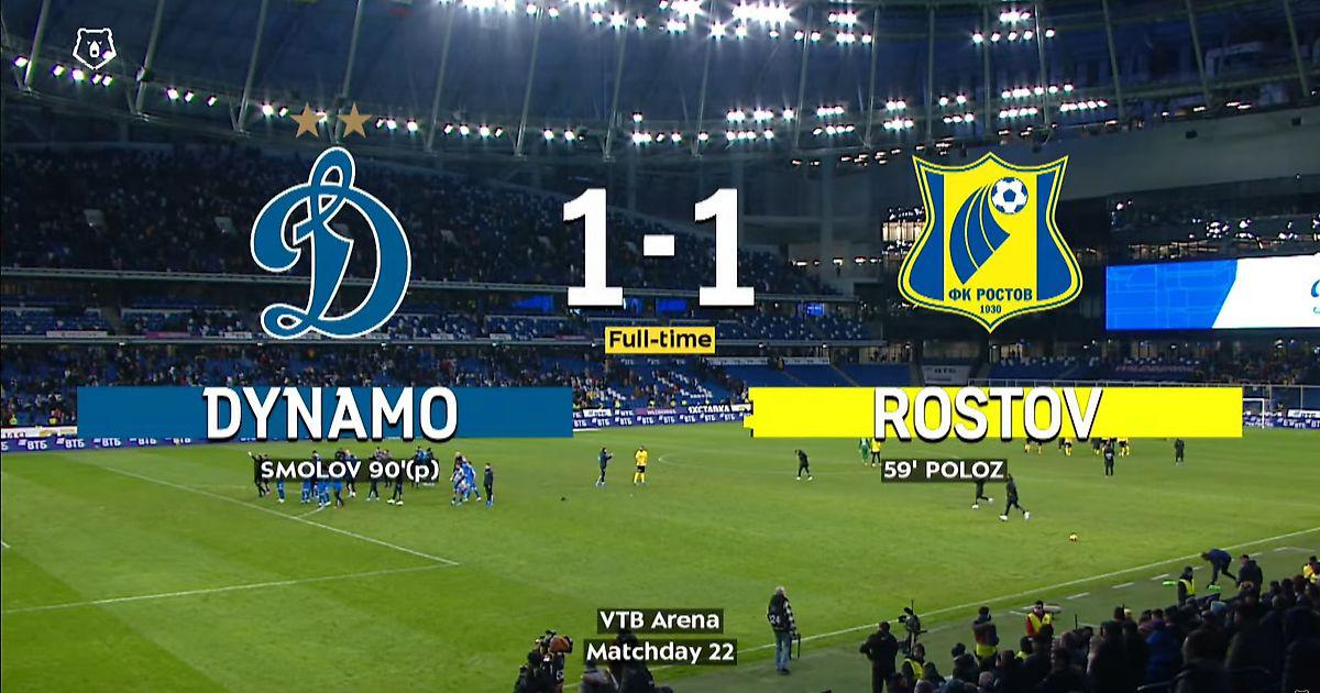 Динамо - Ростов 1:1, 22 тур, сезон 21\22