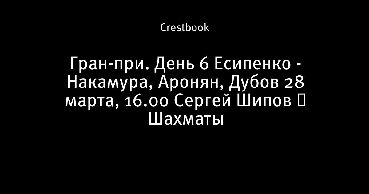 Гран-при. День 6 👑 Есипенко - Накамура, Аронян, Дубов ⏰ 28 марта, 16.00 🎤 Сергей Шипов ♕ Шахматы