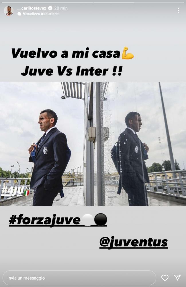 Карлитос Тевес через Instagram Stories поделился сообщением, посвященным болельщикам «Ювентуса»: «Я возвращаюсь домой, «Ювентус» против «Интера». Forza Juve». Итак, «Апачи» будет на трибунах стадиона «Альянц», чтобы поддержать «Ювентус» в итальянском дерби.