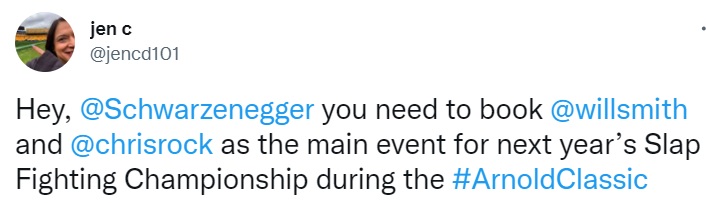 «Арнольд, вам нужно забронировать главный бой Slap Fighting Championship для Уилла Смита и Криса Рока»
