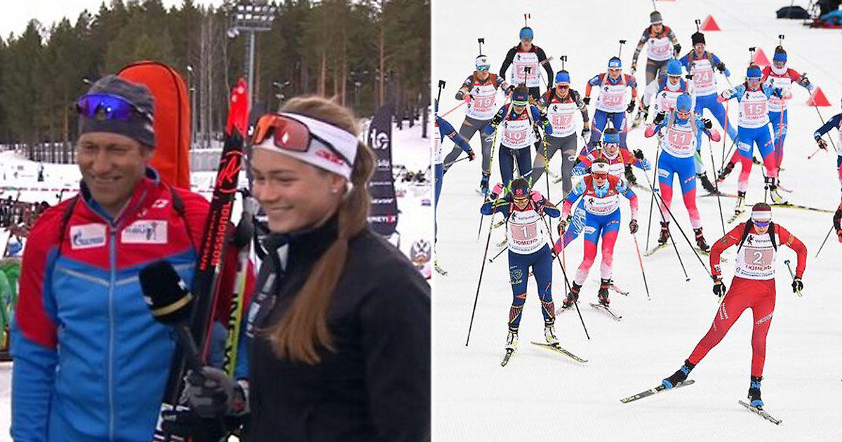 «Будем развлекать народ! Над нами посмеются». На чемпионате России по биатлону эстафету пробежали отец и дочь